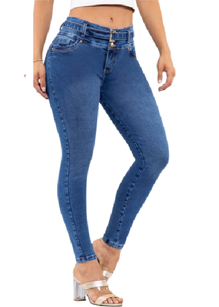 The Jenna Booty Sculpting Jean combines fashion-forward stretch denim with glossy gold hardware for a refined, sleek silhouette. Its tailored design enhances curves while offering comfortable wear, making it an elegant choice for any stylish wardrobe.